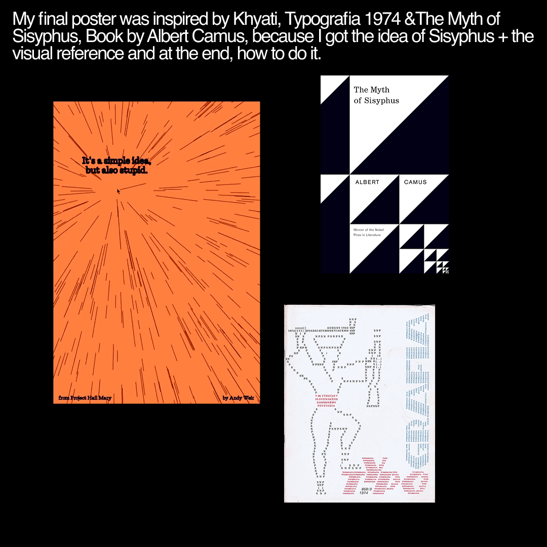 I hope my poster makes people feel Optimistic:) bcuz Albert Camus wrote “one must imagine Sisyphus happy”.